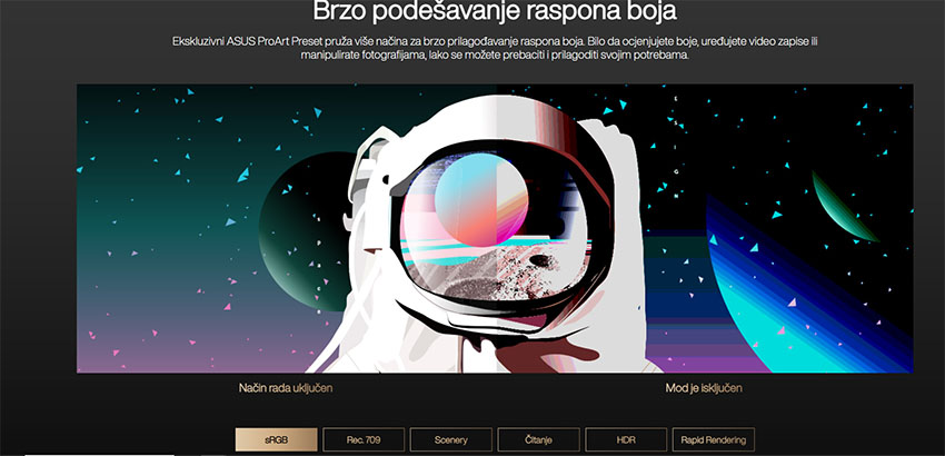 Trace Free Technology, sRGB, 12 ProArt podešavanja, HDCP podrška