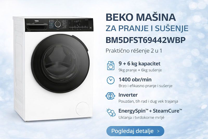 BEKO BM5DFST69442WBP mašina za pranje i sušenje veša 9+6 kg / 1400 ob/min / 15 programa