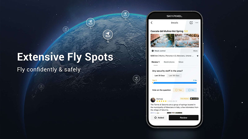 Potpuno nadograđeni SkyPixel može se pohvaliti velikim brojem mjesta za letenje i vrhovima za letenje.