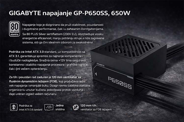 GIGABYTE GP-P650SS 650W 80 Plus Silver napajanje