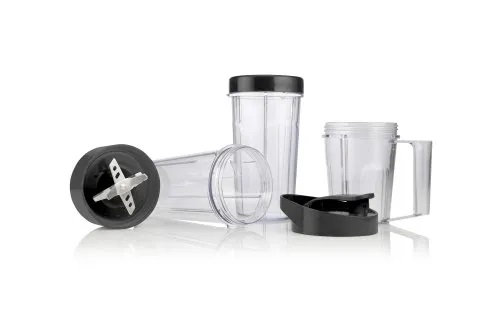 Sa ovim blenderom dobijate tri posude napravljene od kvalitetne plastike bez BPA, poklopac za odlaganje i poklopac za skladištenje. Ceo paket nudi široke mogućnosti za upotrebu kod kuće ili u pokretu!
