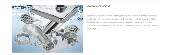 Mašina za mljevenje mesa se brzo i jednostavno rastavlja. Operite sve dijelove mašine za mljevenje,