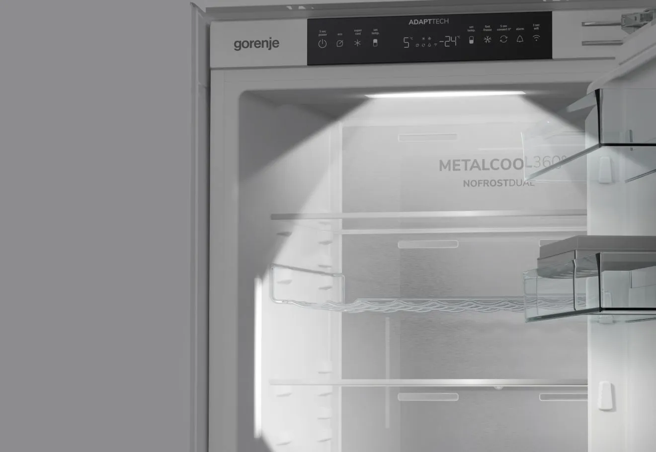 Osvetlite svoj frižider pomoću našeg dvostrukog LED svetla za odličnu unutrašnju vidljivost. Ovo efikasno osvetljenje nudi jasan pregled, do trideset puta duže od običnih sijalica i štedi deset puta više energije.