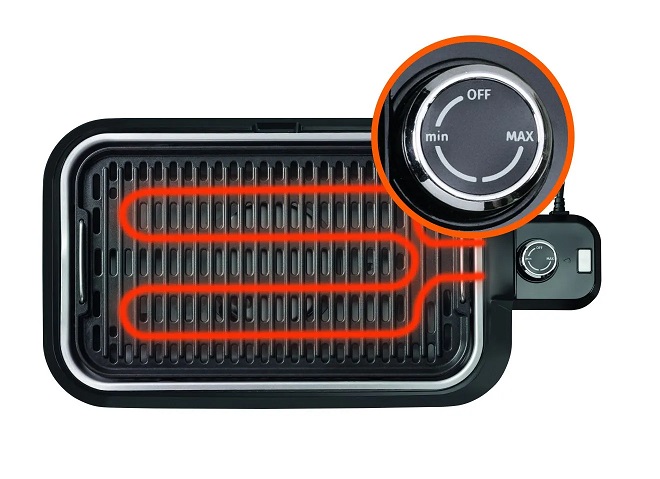 Električni roštilj velike snage od 1800 W ima 3 mogućnosti grijanja (nisko, srednje, visoko), a temperatura se može podesiti između 0-240 ℃ za postizanje najboljeg učinka grijanja. Ugrađene dvostruke U grijače cijevi omogućuju brzo zagrijavanje i održavanje konstantne temperature. Prilikom pečenja na roštilju, toplina se ravnomjerno raspoređuje po cijeloj neprijanjajućoj ploči, prodirući u unutrašnjost hrane, koja je ravnomjerno pečena, zapečena i zadržava vlagu sa savršenim tragovima roštilja.
