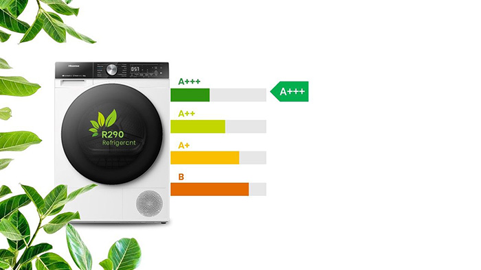 5S sušilica s rashladnim sredstvom R290 ima niži indeks potencijala globalnog zatopljenja od R134a.