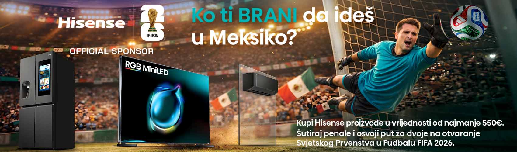 Kupovinom Hisense televizora u minimalnoj vrijednosti od 550€ ostvaruje se pravo učešća u nagradnom takmičenju.