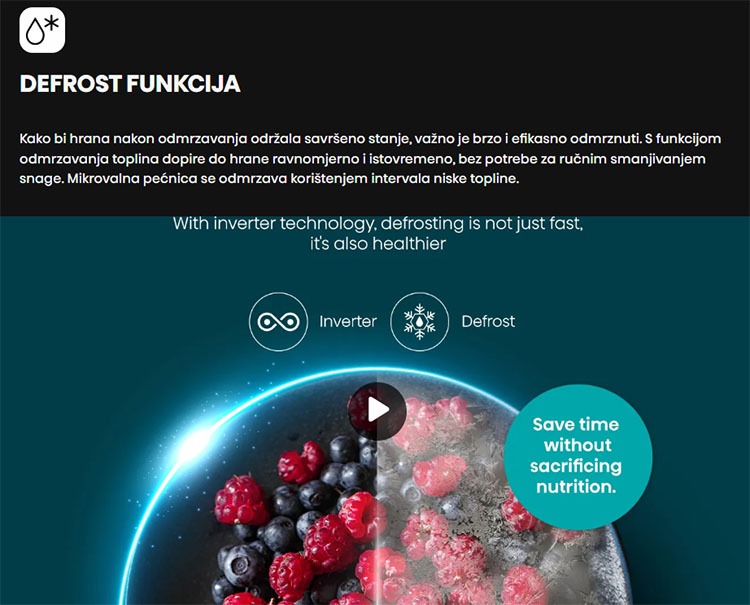 S funkcijom odmrzavanja toplina dopire do hrane ravnomjerno i istovremeno, bez potrebe za ručnim