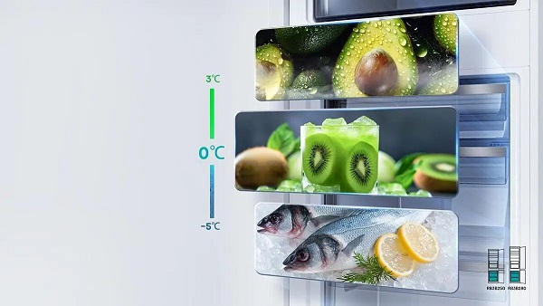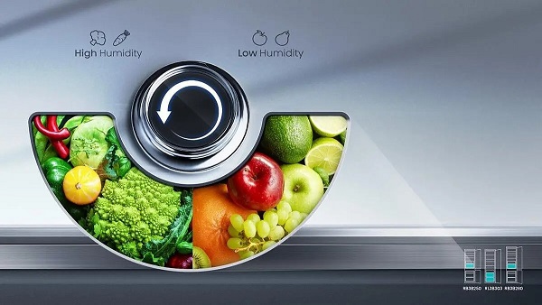 Ladica za voće i povrće sa sustavom za podešavanje vlažnosti omogućuje vam da ručno regulirate vlažnost u ladici kako biste zadovoljili različite zahtjeve skladištenja vaše hrane, a voće i povrće zadržali svježim, hrskavim i ukusnim dulje od tradicionalnog hlađenja.