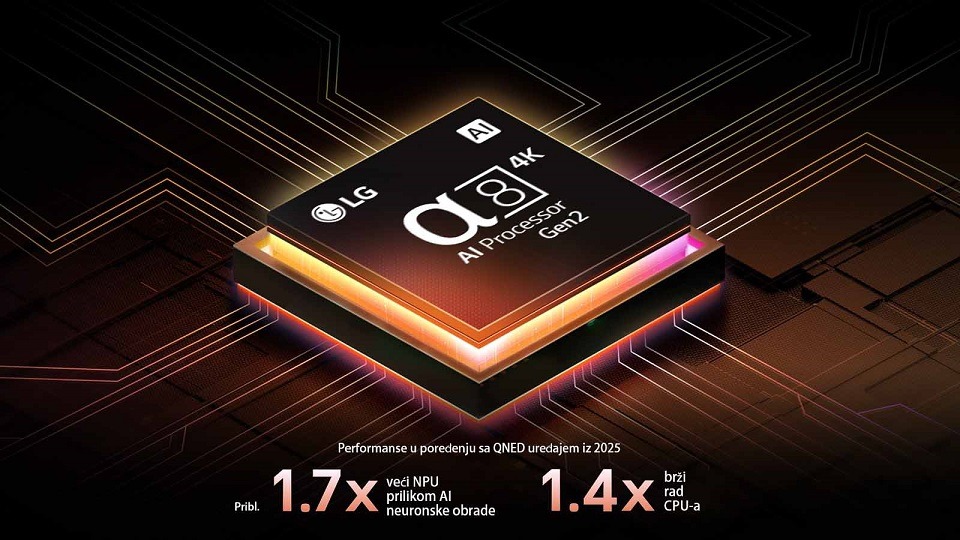 MiniLED koji pokreće novi alpha AI procesor obezbeđuje izuzetno oštar kontrast i realistične detalne na LG QNED evo uređaju.