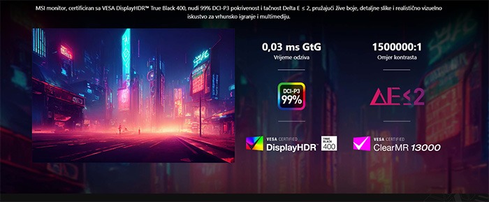 Odziv: 0.03ms (Gray to Gray)