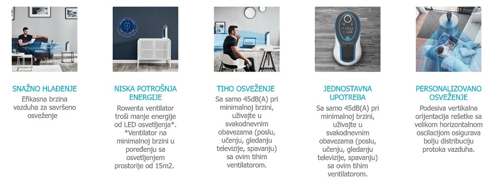 Uz ventilator Rowenta Eole Compact VU6210F0, protok vazduha i elegancija su jedna celina.