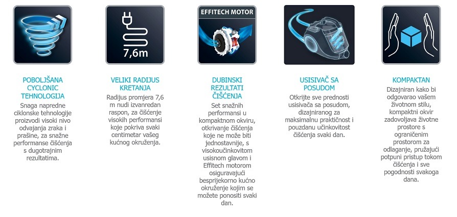 Visoko učinkovita usisna glava i Effitech motor jamče optimalan rad.