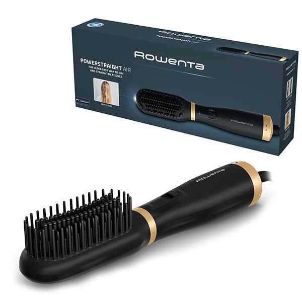 Unapredite svoju rutinu pomoću Powerstraight Air četke na vruć vazduh, 2 u 1 rešenja koje istovremeno suši i ispravlja kosu. Može se koristiti na mokroj i suvoj kosi, ova višenamenska četka ispunjava sve potrebe češljanje, sušenja i ispravljanja jednim uređajem. Jonski generator koji smanjuje elektricitet i naša ekskluzivna keramička obloga nude izvanredno klizanje i blistavi sjaj u kompaktnom, laganom i ergonomskom dizajnu za lakše svakodnevno