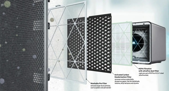 Ugrađen displej, Pre-filter, HEPA filter, Filtracija čestica veličine: PM1.0 / 2.5 / 10