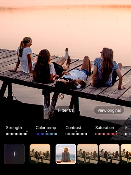 Oživi svoje sličice sopstvenim personalizovanim filterima. Galaxy AI će analizirati tvoje omiljene fotografije i kreirati filter koji hvata scenu. Koristi ga takvog kakav jeste ili ga prilagodi prema svom raspoloženju podešavajući saturaciju, svetlost boja i još mnogo toga.