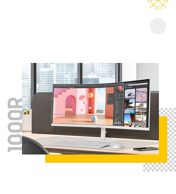 Zaroni u svet igara, filmova i svog projekta. Zakrivljeni ekran od 1000R veličine 34 inča obavija se oko tebe donoseći odnos slike 21 : 9. Ova zakrivljenost približno odgovara vidnom polju ljudi, zato uz manje zamaranje očiju ovaj ekran možeš maksimalno iskoristiti i dostići nove nivoe produktivnosti.