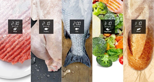Funkcija brzog odmrzavanja brzo i ravnomerno odmrzava namirnice. Njegov algoritam za automatsko odmrzavanje izračunava pravo vreme odmrzavanja za 5 najčešćih vrsta hrane, pa priprema sastojaka traje mnogo kraće.