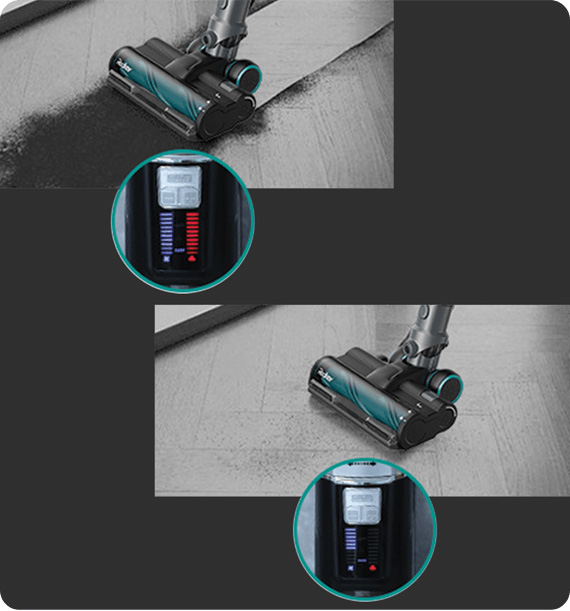 otkrivanjem visokog nivoa prašine i povećanjem snage usisavanja kroz pet različitih nivoa, po potrebi.