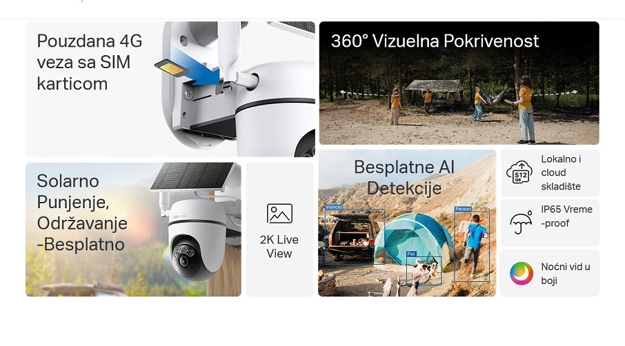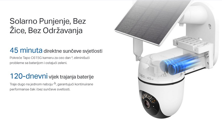 TP-LINK TAPO C615G KIT Spoljašnja 4G 2K kamera sa solarnim panelom