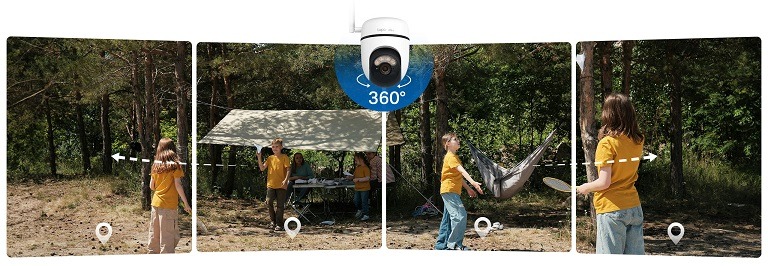360° AI praćenje: Kamera pruža 360° pokrivenost i precizno identifikuje i prati ljude, kućne ljubimce i vozila