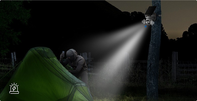 Odvraćajte neželjene uljeze sa prilagodljivim zvukom i prilagodite intenzitet dvostrukih reflektora za fino podešeno osvetljenje.