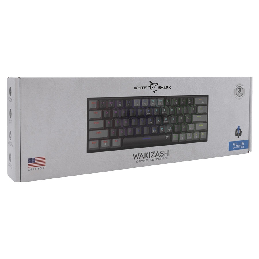 Doživite vještinu igranja s White Shark WAKIZASHI tastaturom. Kompaktna, ali moćna, ima 63/64 mehanička