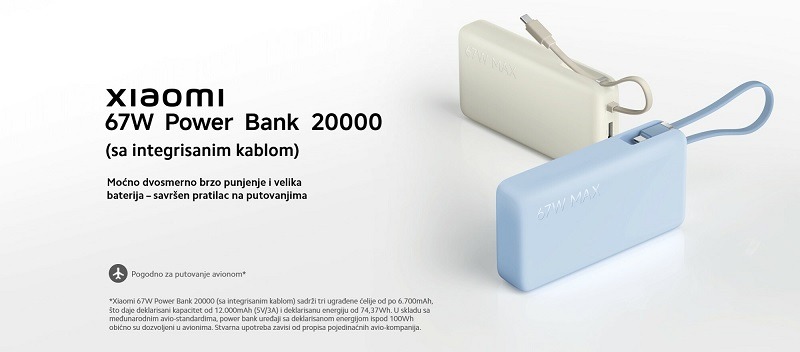 Xiaomi 67W Power Bank 20000mAh (sa integrisanim kablom)