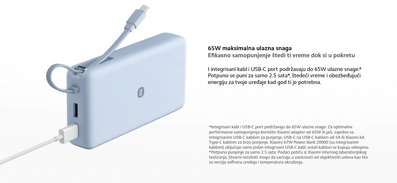 Xiaomi 67W Power Bank 20000mAh (sa integrisanim kablom) (plavi)