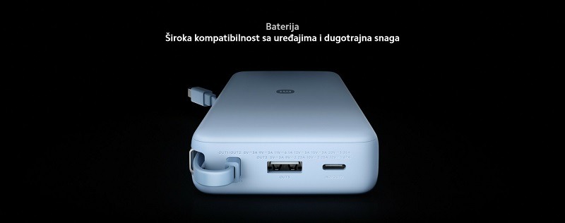 Baterija: Litijum-ion; Nazivni kapacitet: 20000mAh (5V/3A)