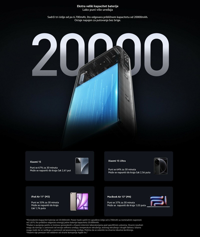 Oznaka uređaja: Xiaomi 67W Power Bank 20000mAh