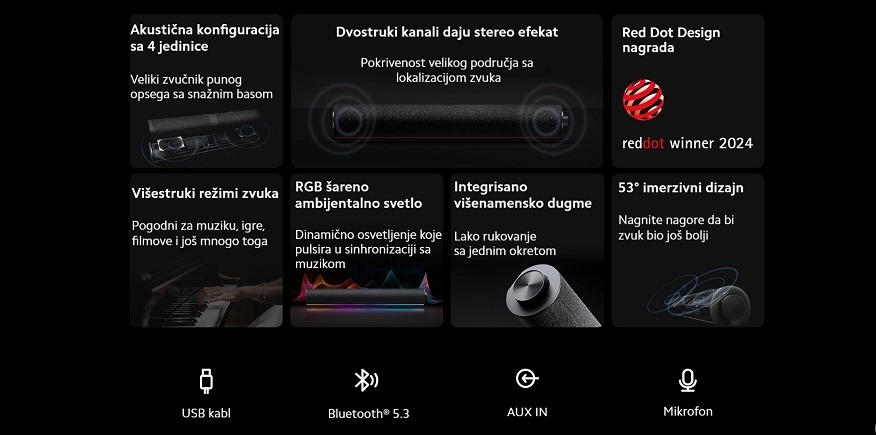 Funkcije: Ugrađen hands-free mikrofon, RGB osvetljenje