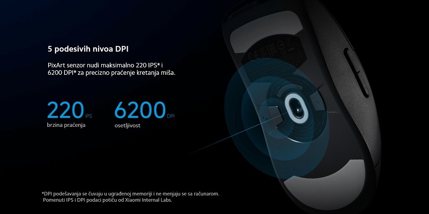 Maksimalna rezolucija (DPI): do 6200 DPI, sa 5 podesivih nivoa (400, 800, 1600, 3200, 6200 DPI)