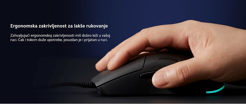 Senzori od 6200dpi, RGB ambijentalno osvetljenje, TTC zlatni mikroprekidač, Fleksibilni pleteni kabal