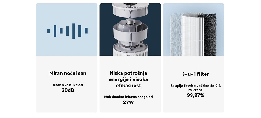 Efikasnost prečišćavanja: Visokoefikasna filtracija - 99,97% čestica veličine do 0,3 mikrona