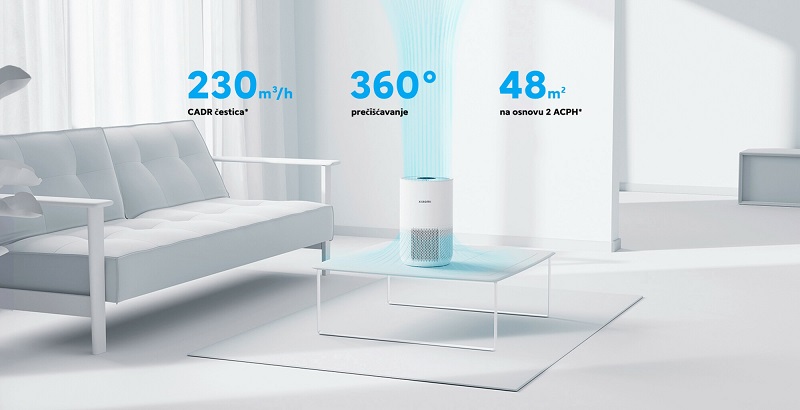CADR - Clean Air Delivery Rate (čestice) 230 m³/h, Životni vek filtera 6-12 meseci,