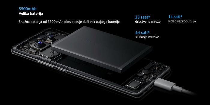 Baterija: 5500mAh, Fast charging 45W