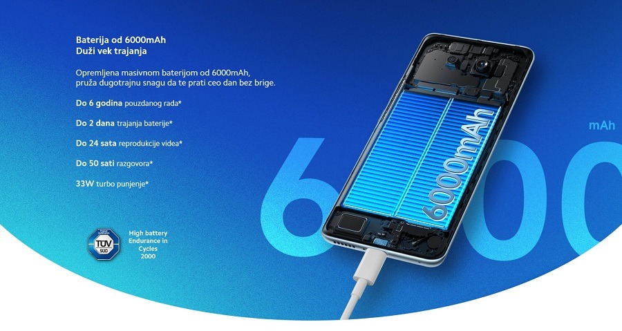 Baterija: 6000mAh, Fast charging 35W, 18W obrnuto punjenje