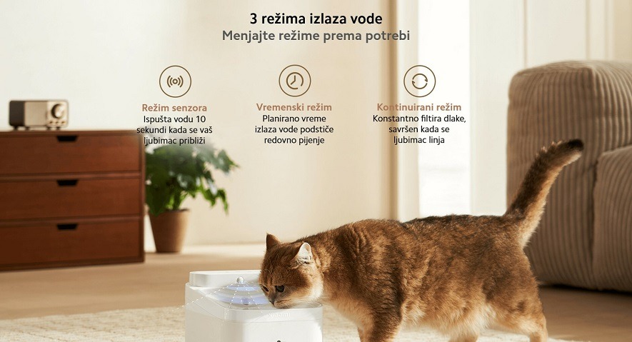 Xiaomi Smart Pet Fontana 2 je napredna pametna fontana za kućne ljubimce koja osigurava stalnu dostupnost svježe, filtrirane vode tokom cijelog dana. Dizajnirana je za vlasnike pasa i mačaka koji žele poboljšati hidrataciju svog ljubimca i istovremeno olakšati svakodnevnu brigu. Uz poboljšanu cirkulaciju vode i višeslojni filter, ova smart fontana efikasno uklanja dlačice, nečistoće i neugodne mirise, čineći svaki gutljaj čistim i zdravim.