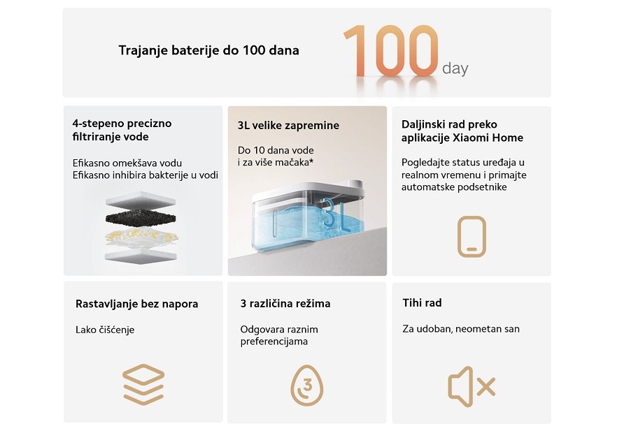 Trajanje baterija do 100 dana, 4 stepena filtracije vode