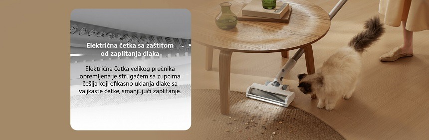 Električna četka se prilagođava različitim materijalima za tlo kao što su podovi, tepisi i pločice. Prednje LED svetlo poboljšava vidljivost pri slabom svetlu, za temeljnije čišćenje cele kuće.